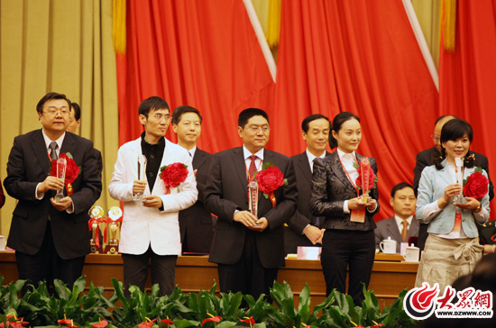 大眾網北京11月8日訊(記者 曹亮) 今天是新中國第十一個記者節。第二十屆中國新聞獎、第十一屆長江韜奮獎頒獎報告會在北京隆重舉行。本網總編輯朱德泉、大眾日報首席評論員孫秀嶺于11月8日下午作為中國新聞獎獲獎代表受邀出席了此次頒獎報告會。會前,受到了中共中央政治局常委李長春,中共中央政治局委員、書記處書記、中宣部部長劉云山,中共中央政治局委員、國務委員劉延東,全國政協副主席、中國社會科學院院長陳奎元等黨和國家領導同志的親切接見,并合影留念。在頒獎報告會上,本網總編輯朱德泉作為中國新聞獎一等獎獲獎代表上臺領獎。