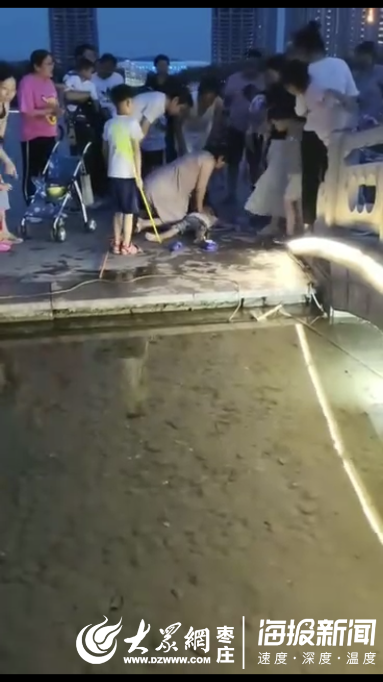 據男童母親介紹說,3日晚上自己帶著孩子在鳳鳴湖公園玩耍,走在水景邊時孩子突然觸電落水。同在遛彎的一位大哥眼疾手快,迅速將男童從水中救出,但此時男童已經失去意識,處于休克狀態。附近散步的護士曹女士隨即對男童實施了人工呼吸、心肺復蘇等急救措施,約3分鐘左右男童終于有了意識,哭了一聲。隨后男童被送往棗莊礦業集團中心醫院進行救治。