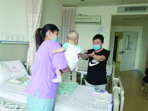 術后澤澤被送到了監護室,“孩兒他媽第二天就去監護室看孩子了,醫生也拿來孩子照片給我看。手術后第二天,孩子的膽紅素一下子降到了接近正常的水平,我特別高興。”亓加衛說,在監護室呆了3天后,澤澤回到了普通病房,和他同住一間病房,他終于可以抱一抱自己親愛的孩子。“當時我就發現,孩子白白胖胖的,不再是那個‘小黃人’了,簡直和之前判若兩人。”亓加衛說,看著眼前的孩子,他簡直不敢相信那是之前一直黃黃的澤澤,這應該就是生命的奇跡吧。