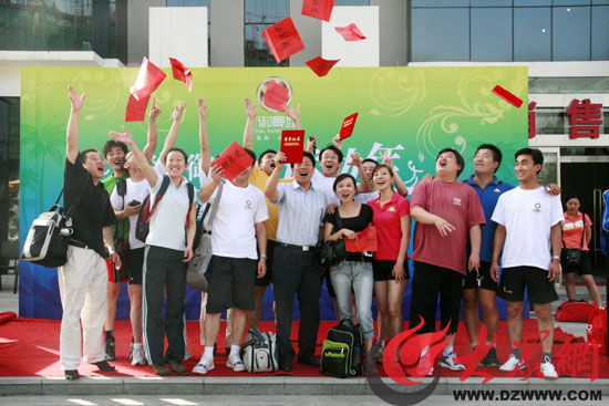 山東省委宣傳部辦公室主任紀濤,濟南順城房地產開發有限公司營銷總監郭敏女士,大眾網副總編輯曲濤以及大眾網市場運營中心主任陳月軍等領導和嘉賓出席了開幕儀式,并為大賽開球。