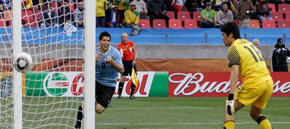 6月23日,澳大利亞隊球員肯尼迪(上)與塞爾維亞隊球員亞歷山大·盧科維奇爭頂。當日,在南非內爾斯普雷特舉行的2010南非世界杯足球賽D組最后一輪比賽中,澳大利亞隊以2比1戰勝塞爾維亞隊,但兩隊雙雙在D組中被淘汰。新華社記者徐速繪攝