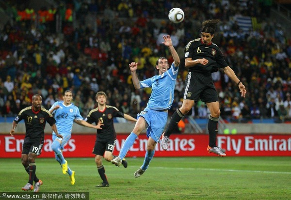 本場比賽,相對于烏拉圭幾乎排出了所有主力陣容,德國隊的出場陣容變動頗大。拜仁36歲的老門將布特意外得到首發機會,漢堡后衛奧戈也在本屆杯賽里首發亮相,前鋒卡考則繼小組賽對加納一役后再次成為首發。前鋒克洛澤盡管站在了趕超世界杯史第一射手羅納爾多的門檻上,但是受困于背傷,未能進入首發名單。除克洛澤外,最近身陷新聞暴風眼的隊長拉姆、波多爾斯基都染上了病毒性感冒坐在替補席上。因此,施魏因斯泰格戴上隊長袖標。