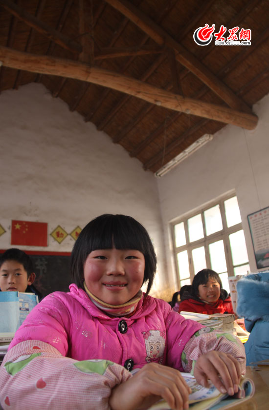 走進穆家小學(xué)五年紀一班的教室,記者看到學(xué)生們還是在上世紀七八十年代的校舍里上課。由于校舍破舊,教室里的土暖氣取暖效果有限,許多孩子凍得兩腮通紅,有的甚至嘴唇都有些發(fā)紫。