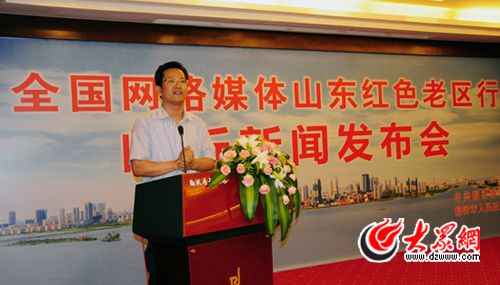 今天下午,在結束濟寧紅色老區行之后,采訪團一行百余人按照計劃到達臨沂,開始了對臨沂紅色老區為期四天的走訪。宣傳部長李建華在臨沂新聞發布會上致辭,她說,值此建黨90周年即將來臨之際,來自全國網絡媒體界的朋友們聚焦臨沂,以飽滿的熱情和獨特的視角向全國人民展示臨沂的巨大發展變化,體現了各位朋友們對沂蒙老區的深情厚愛,必將對展示臨沂的嶄新形象、提高臨沂的知名度和美譽度起到積極的推動作用。