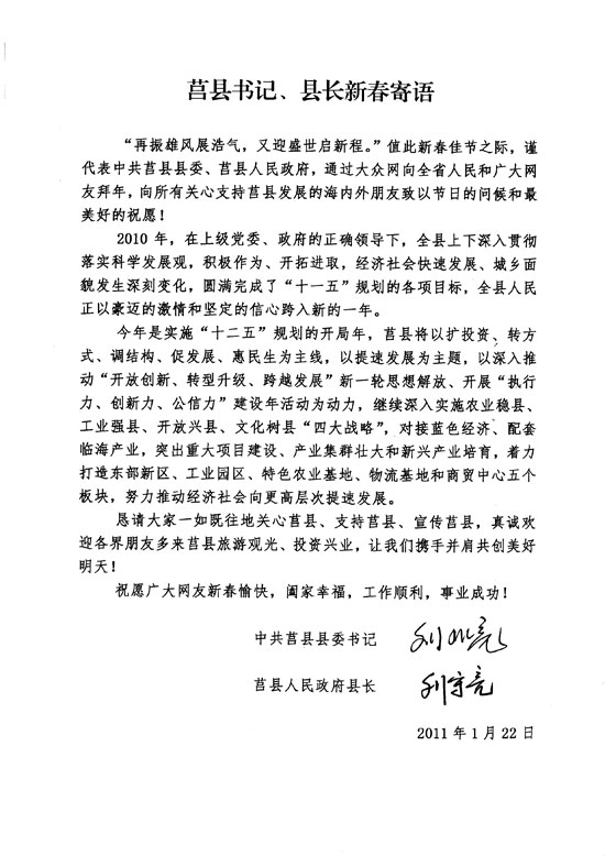 莒縣縣委書記 劉兆亮 莒縣縣長 劉守亮