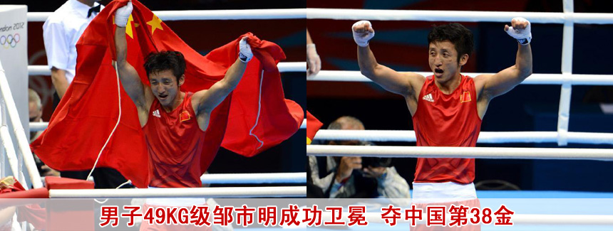 2012年8月11日,拳擊——鄒市明奪得男子49公斤級冠軍。圖為,鄒市明慶祝勝利。當日,在倫敦奧運會男子拳擊49公斤級決賽中,鄒...
