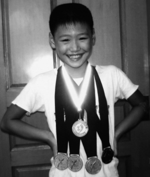 10歲的葉詩文理著短發(fā),脖子上掛滿了金牌,這個(gè)時(shí)候的她在少兒比賽中拿金牌拿到手軟。