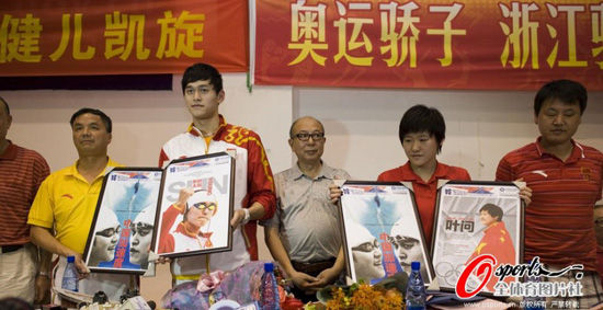 [提要] 從倫敦奧運(yùn)會(huì)凱旋歸來,分別摘下了兩枚金牌的2位游泳健兒孫楊(微博)和葉詩文(微博),在北京短暫的停留之后,已于北京時(shí)間的8月8日趕回了老家杭州。好事多磨,8月8日晚間大約22點(diǎn),孫楊、葉詩文等一行人終于順利抵達(dá)杭州,在杭州家鄉(xiāng)父老的花團(tuán)錦簇、一片歡呼聲的迎接禮之后,孫楊等奧運(yùn)健兒迅速接受了當(dāng)?shù)孛襟w的采訪。