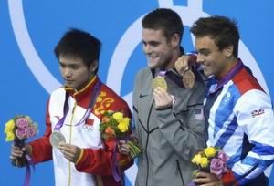 [提要] 北京時間8月12日凌晨,剛剛結束的倫敦奧運會男子10米單人臺決賽中,中國世界冠軍邱波566.85分獲得亞軍,美國名將鮑迪亞獲得冠軍,英國名將戴利556.95分獲得銅牌。首輪結束后林躍和邱波并列第四,美國的鮑迪亞和德國的沃爾夫拉姆并列第一,戴利暫居第三。