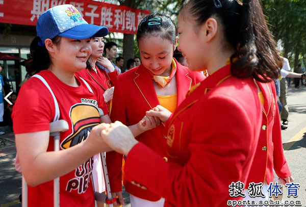 [提要] 今天包括陸善真在內的全體教練員和隊員都身著統一的鮮紅色出征服,包括數十家媒體以及運動員家長都來天壇公寓給女隊送行,在鼓樂隊伴奏之下,現場氣氛非常熱烈。