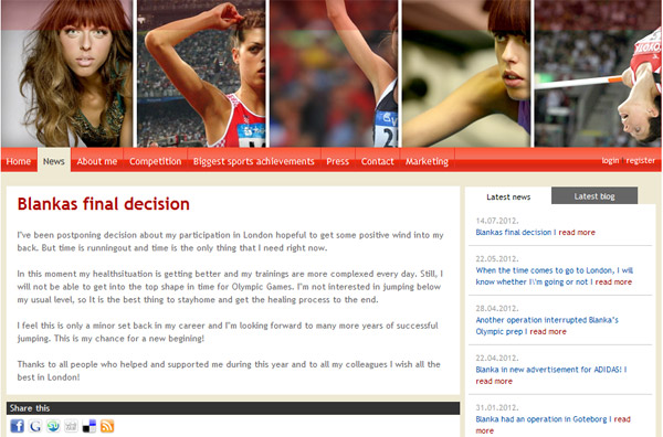 “我現在需要的只是時間,可惜時間所剩無幾了。”前世界跳高冠軍維拉西奇在她的個人網站上苦澀地宣布,她因受腳傷折磨,而不得不與倫敦奧運會說再見。