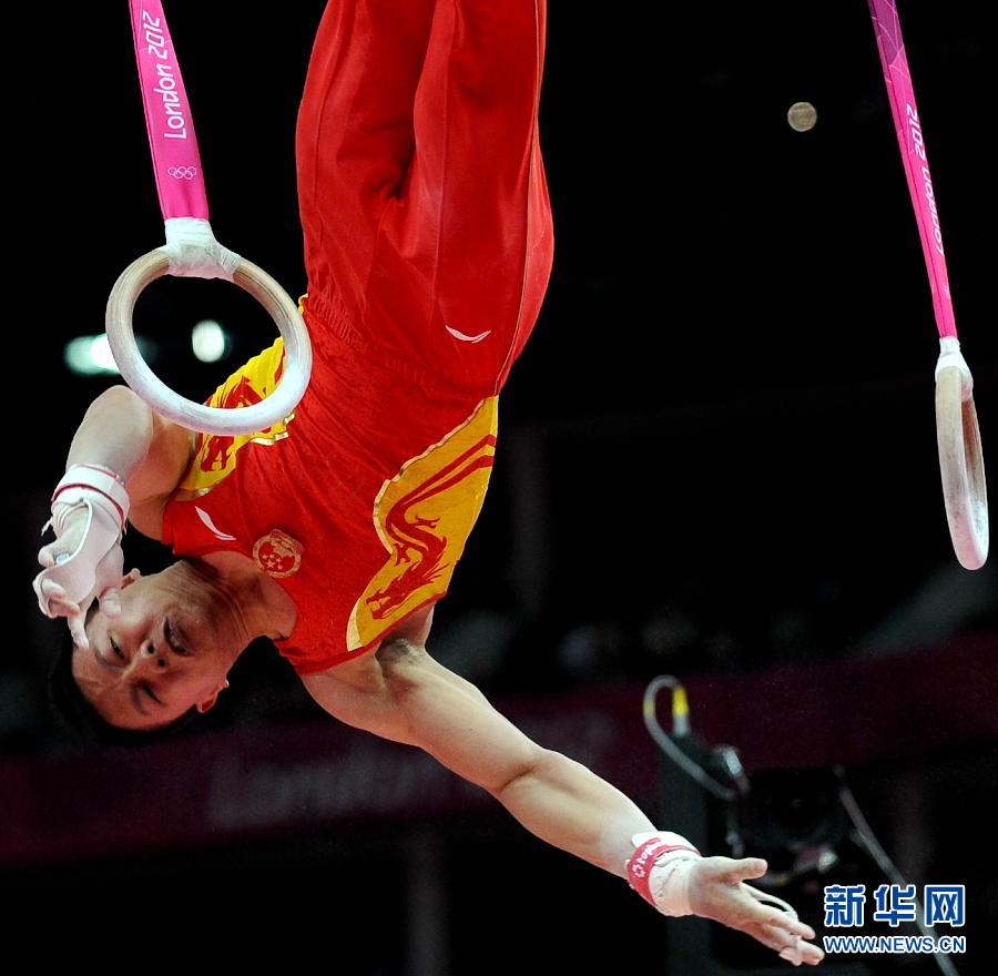 7月30日,中國選手陳一冰在吊環比賽中。當日,在倫敦奧運會體操男子團體決賽中,中國隊獲得冠軍。 新華社記者王建華攝