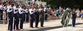 7月13日,中國選手劉翔(左二)離開賽場。在7月13日自己29歲生日這天,劉翔因為預賽之后出現的肋部不適,退出了鉆石聯賽倫敦站的110米欄決賽。 新華社記者王子江攝