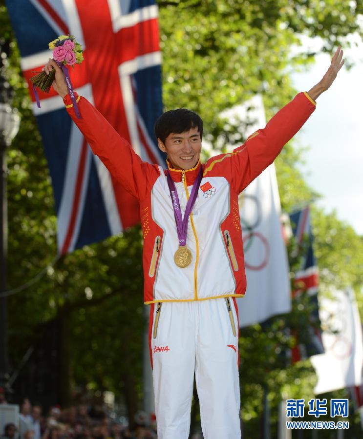 8月4日,中國選手陳定在頒獎儀式上。當日,在2012年倫敦奧運會田徑男子20公里競走比賽中,中國選手陳定以1小時18分46秒的成績奪得冠軍,并打破奧運會紀錄。危地馬拉選手巴隆多以1小時18分57秒獲得亞軍,中國選手王鎮(zhèn)以1小時19分25秒獲得季軍。新華社記者郭勇攝