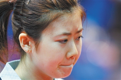 東亞運(yùn)動(dòng)會(huì)乒乓球女單1/4決賽,福原愛0比4負(fù)文佳,強(qiáng)忍淚水。