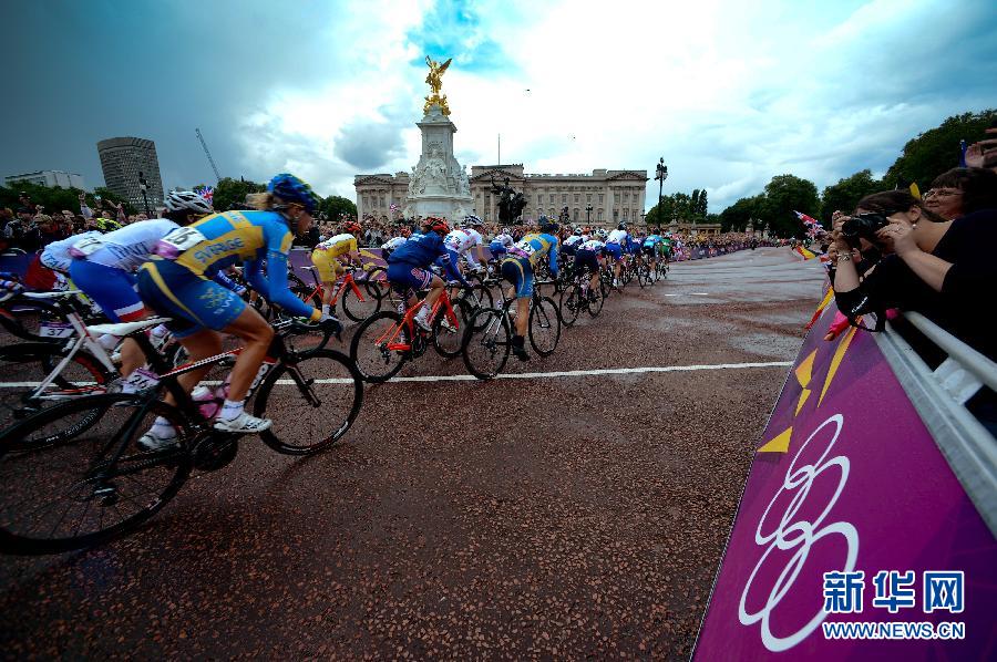 7月29日,選手們在比賽中騎行。當日,2012倫敦奧運會公路自行車賽女子組開賽。 新華社記者王建華攝