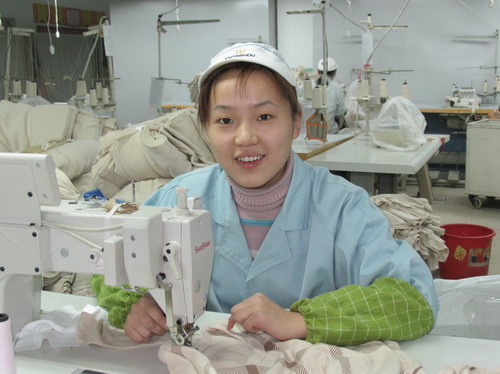 2002年,初中剛畢業的明建建,放棄了繼承父親家業的安逸生活,毅然決定去濟南打拼。初到元首公司,她被分配到內銷成衣車間縫紉一組平縫機工序學習。一開始,從沒接觸過縫紉機的她總是走不直線,甚至經常出現機器卡線的情況,但她有一股不服輸的勁頭。每天早上同事們還沒上班,她就第一個來到車間熟悉設備;下班后,小姐妹們都休息了,她還在車間里學習工藝。功夫不負有心人,幾個月后,她就能單獨承擔縫紉工序了,這也讓她對未來的生活充滿了信心,并漸漸愛上了這份工作。因為有著對做好每一件衣服的執著,她很快就掌握了平機、八一包縫、雙針、打結等多種機器的操作方法,成了一名技術嫻熟的“多面手”,她精湛的技藝得到了公司領導的充分認可。2006年9月,經過層層嚴格篩選,她代表公司參加了山東省針織行業服裝制作工職業技能大賽,取得了縫制項目第三名的優異成績,并獲得了代表山東省參加全國技能大賽的資格。