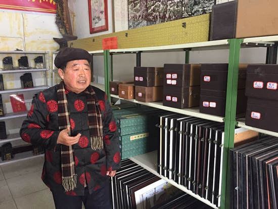 “要想收藏一套門類齊全且檔次較高的孝道文化書畫藝術作品,難度是比較大的。”張志銀說,2009年他患腦梗塞,留下了左側活動不便的后遺癥,去外地和藝術家打交道有很多不便。盡管如此,張志銀還是拄著拐杖,拖著病殘的身體,走南闖北搞收藏,廢寢忘食搞研究。可以說,一天24小時,除了吃飯、睡覺,他心里想的手里做的,幾乎全都與優秀傳統文化的收藏與研究有關。經過四年多的不懈努力,張志銀共收藏450多幅表現孝道文化的書畫藝術作品。藝術門類涉及年畫、剪紙、刻瓷畫、書法、篆刻、漢畫像石拓片等。最可貴的是,他收藏了一套泰山墨玉九龍鈕《二十四孝印》,國內獨一無二,受到收藏大家們的首肯,被譽為孝道文化藝苑中的一束靚麗的奇葩。