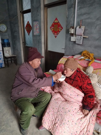 劉愛民喂妻子吃飯