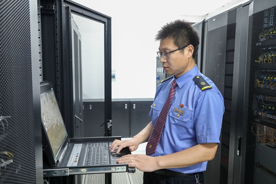 濟(jì)南局聊城車務(wù)段技術(shù)科助理工程師王利建在工作中維護(hù)計(jì)算機(jī)設(shè)備