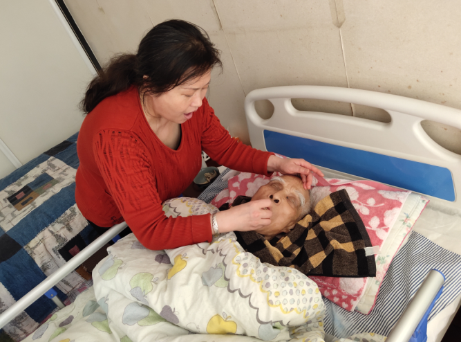 衰老是人之常情,孝老乃德之大義。徐淑春的婆婆一直有腦血栓后遺癥,在床上癱瘓十余年,生活不能自理。徐淑春退休后,沒有任何的怨言,又接起照顧婆婆的重任。都說婆媳關系難處,但是徐淑春把自己當成婆婆的親女兒一般,竭盡全力地照顧著她,在婆婆癱瘓期間,日復一日照顧婆婆的飲食起居,喂飯、擦身體、清理屎尿、換洗衣物、整理床鋪等等細微處都是徐淑春的身影。徐淑春小小的個子,照顧著身形高大的婆婆,從床上給婆婆翻身,將婆婆搬到椅子上去曬太陽等等,那小小的個頭仿佛有使不完的勁頭,盡心盡力承擔起照顧婆婆的重任,任勞任怨在婆婆身邊精心照顧的這些年,兩人從未紅過臉,時時處處事事躬身踐行孝老愛親的家風家訓。