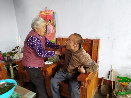 唐學(xué)梅照顧腦癱養(yǎng)子