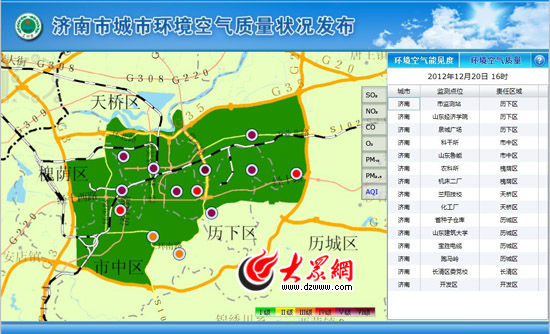 大眾網濟南12月20日訊(記者 王磊 盛堃)今天,山東實時公布PM2.5首日,濟南15個監測點中有8個監測點顯示“重度污染”。濟南市環境保護監測站大氣監測科科長呂波說,當前使用的環境空氣質量指數(即AQI)標準包括PM2.5等六項內容,比過去更嚴格,更貼近戶外直觀感受,請市民理性看待。另外,當前發布的內容中,還新增了出行建議,將來空氣質量預報及預警也有望納入發布范圍。