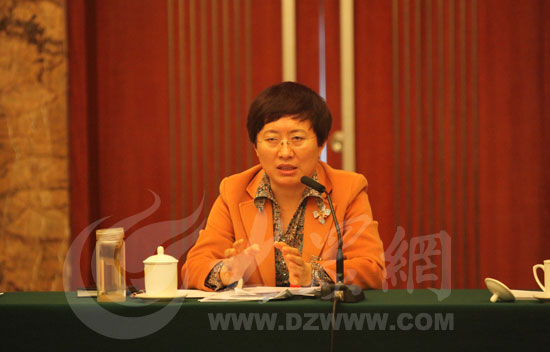 十二屆全國人大代表、山東省副省長、九三學社山東省委主委王隨蓮回答記者提問。(大眾網(wǎng)特派記者 赫洋 攝)