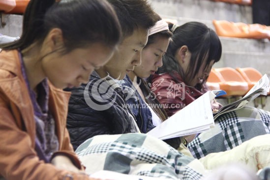 當記者問這次地震會不會對張晉備戰(zhàn)高考產(chǎn)生影響時,張晉笑著搖頭又點頭,“就希望能趕快復(fù)課,哪怕有個舒服點的房子看看書也好。”記者了解到,寶興縣海南高級中學(xué)體育場的看臺就是張晉和他的同學(xué)們的臨時課堂,把書攤開放到腿上,依然能鉆進那復(fù)雜的幾何圖形中去。夜晚的寶興氣溫很低,張晉和他的同學(xué)們用被子將腿包了個嚴嚴實實,以此取暖。