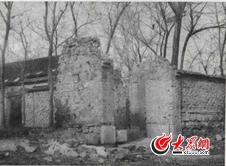 1938年1月30日,日寇炮擊河東村炸毀的民宅門樓殘跡