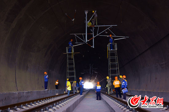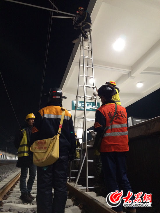 隨著青榮城際鐵路正式通車日益臨近,越來越多的目光聚焦到這條全長299公里的線路上。拔地而起的高鐵新站、呼嘯而過的試驗列車,這一切承載著膠東的“高鐵夢”,令人心潮澎湃。然而人們恐怕很少記起,白天鐵路上往來列車不斷,要保證線路的安全通暢,絕大部分檢修和維護工作只能在夜間進行。12月18日晚,大眾網(wǎng)記者走進青島供電段萊西北接觸網(wǎng)工區(qū),走近長期在青榮線上高空作業(yè)的接觸網(wǎng)工人,從深夜到次日凌晨,親身體驗了這些“蜘蛛人”們的8小時夜生活。