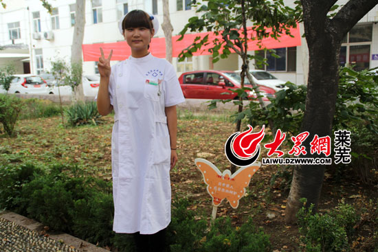 大眾網萊蕪9月1日訊(記者 亓秀寶)張麗華是萊蕪市中醫醫院的一名護士,每天面對著各種病患,她用扎實的業務和慢慢的愛心對待每一位患者。9月3日大閱兵,張麗華堅守在崗位一線,以自己的實際工作為祖國加油,用微笑和勝利的“V”字手勢為祖國點贊。