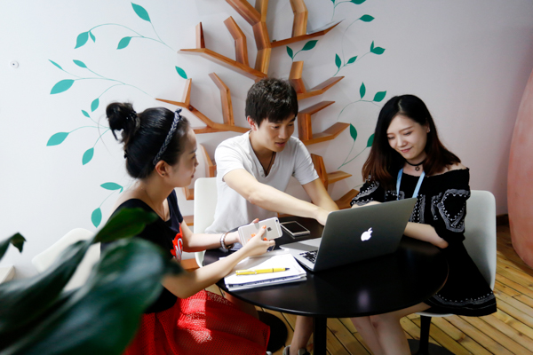 19日上午,采訪團(tuán)走進(jìn)韓都衣舍位于濟(jì)南市高新區(qū)的智匯藍(lán)海,首先引入眼簾的是墻壁上幾十個(gè)電商品牌標(biāo)識(shí)組成的矩陣,創(chuàng)意設(shè)計(jì)、精品服飾、跑腿服務(wù)、農(nóng)產(chǎn)品經(jīng)營(yíng)……這些品牌經(jīng)營(yíng)的項(xiàng)目五花八門(mén),但他們有一個(gè)共同的“中樞神經(jīng)”——韓都。這里是韓都電商集團(tuán)打造的互聯(lián)網(wǎng)品牌孵化基地,旨在打造“賦能型、專業(yè)性、生態(tài)化”新型孵化器,為眾多處在成長(zhǎng)期的電商品牌團(tuán)隊(duì)提供運(yùn)營(yíng)策略、辦公場(chǎng)所、硬件設(shè)備等基礎(chǔ)支撐。今年1月份揭牌成立后,短短幾個(gè)月時(shí)間,就有13個(gè)品牌團(tuán)隊(duì)入駐智匯藍(lán)海;隨后的日子里,數(shù)以百計(jì)的入孵申請(qǐng)如雪花般不斷飛來(lái)。
