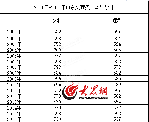 山東今年的理科一本線是近16年來的第二低。2003年的山東理科一本線是2001年以來的歷史最低,為524分。記者注意到,今年山東的理科一本線僅比2003年高了13分。即使與有著理科一本線近10年最低的2013年相比,今年山東理科一本線也比2013年低了17分。