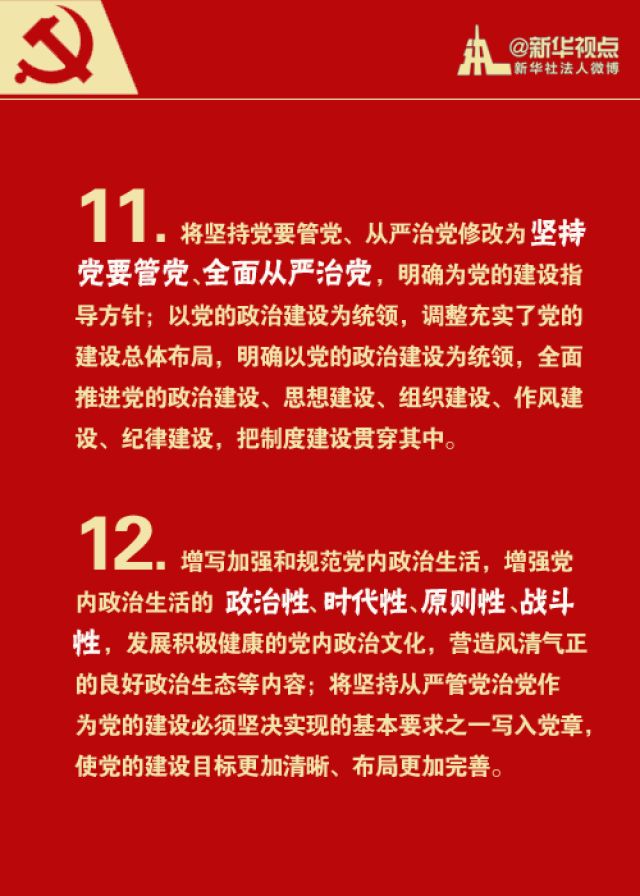 大會通過的黨章修正案,共修改107處,其中總綱部分修改58處,條文部分修改49處。重點修改、增加了哪些說法?戳圖學(xué)習!