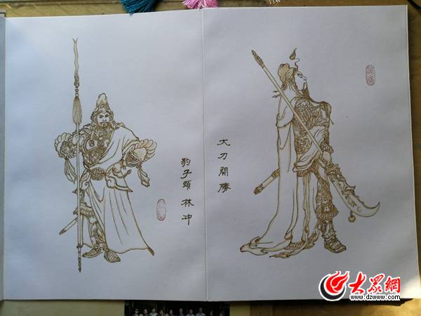 為了創作這幅紙烙畫,劉憲德又重讀了四大名著,重新熟悉里面的人物和情節,揣摩每個人物的性格、神情、體態,再結合所處的故事情境和書上的畫像進行全新的創作,盡量把每一個人物的特點都從畫面上表現出來。每一個烙畫人物的產生都經過了一番仔細敲打,烙出來的畫像也栩栩如生。