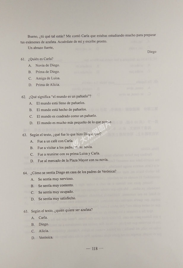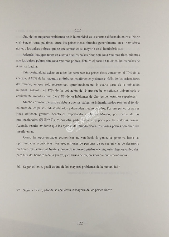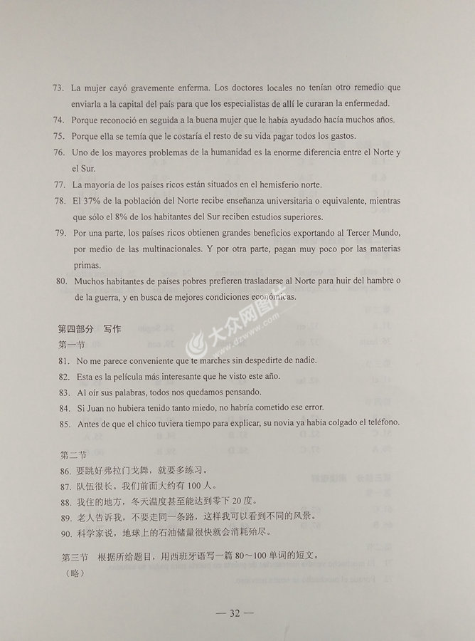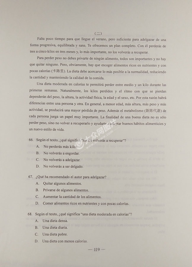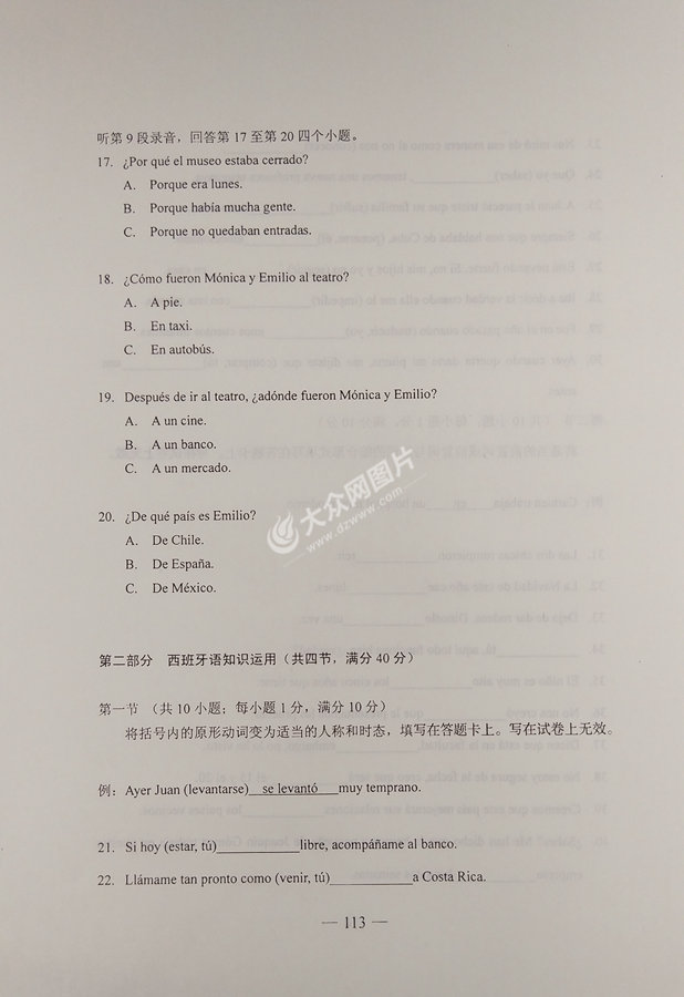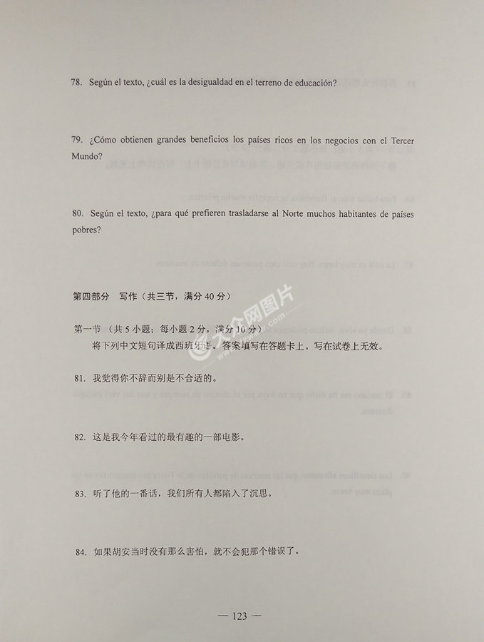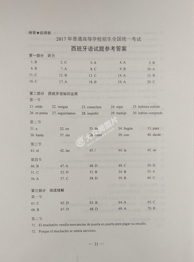 2017年山東高考西班牙語試題及答案