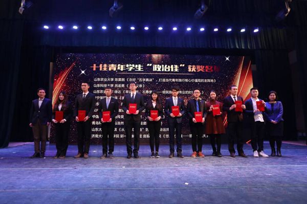 十佳青年學生“政治佳”獲獎選手上臺領獎。