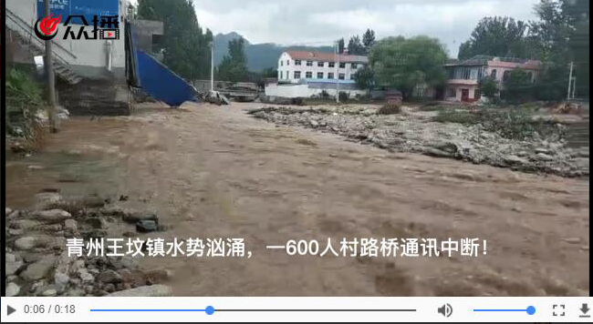 大眾網(wǎng)8月20日訊 (記者 張平 通訊員 王行)受臺風(fēng)“溫比亞”影響,青州市出現(xiàn)大暴雨天氣,位于西南山區(qū)的王墳鎮(zhèn)遭受洪災(zāi)損失嚴(yán)重,多處道路及通訊被沖斷。