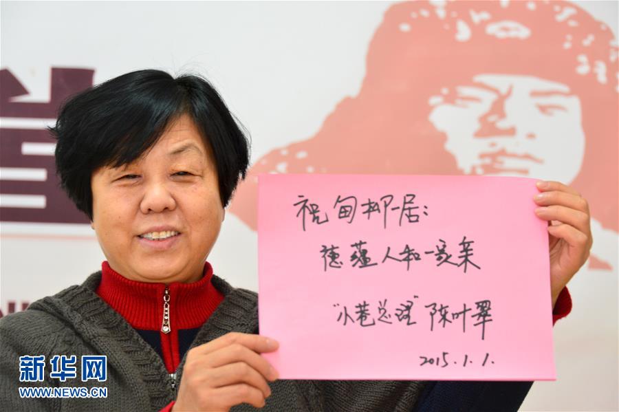 在濟(jì)南市甸柳新村街道第一社區(qū),“小巷總理”陳葉翠寫下了自己的新年心愿(2015年1月1日攝)。新華社記者 郭緒雷 攝