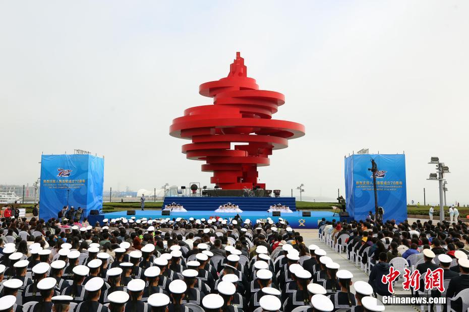 4月22日,慶祝中國(guó)海軍成立70周年中外海軍聯(lián)合軍樂(lè)展示在青島五四廣場(chǎng)舉行。此次軍樂(lè)展示以“大海樂(lè)章·和平交響”為主題,分為“和平之海”“和平之師”“和平之歌”3個(gè)篇章。聯(lián)合軍樂(lè)展示在歌舞《人民海軍向前進(jìn)》中拉開(kāi)序幕。胡耀杰 攝