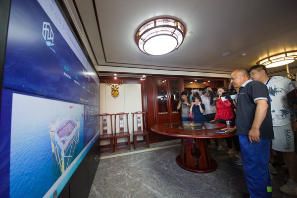 網箱上方建筑采用別墅設計,采用高標準“中國風”裝修風格。“這是我們特意定制的,更好地使旅游業和漁業真正結合,”宋守剛說,“這里還可以供游客休閑垂釣。在平臺兩側分別布置有150平方米的設備間和400平方米的生活區,可讓游客親身體驗高科技養魚過程!