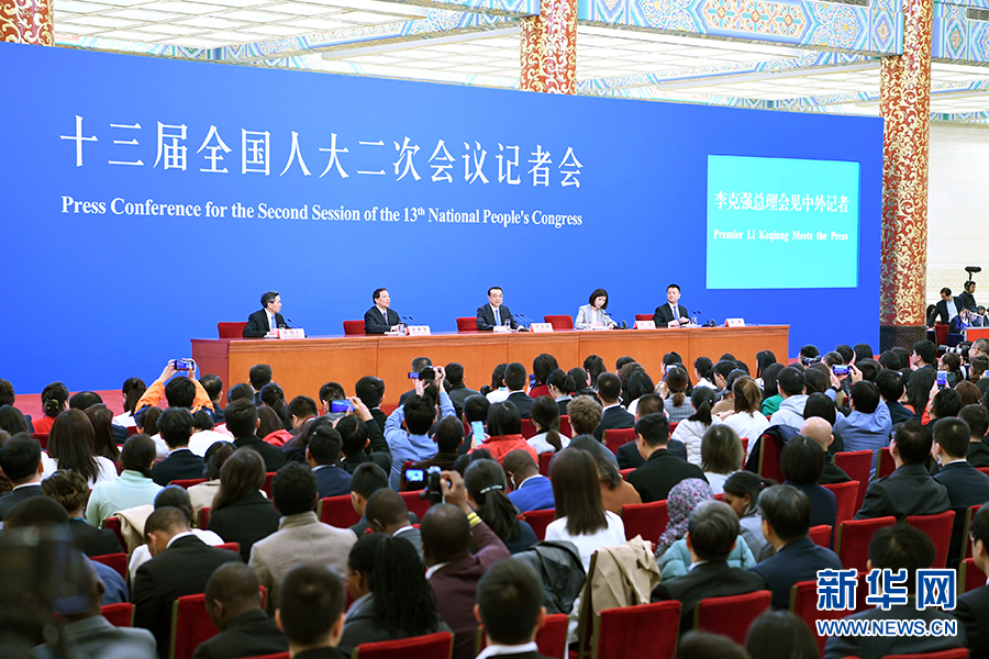 3月15日上午十三屆全國(guó)人大二次會(huì)議閉幕后,國(guó)務(wù)院總理李克強(qiáng)在人民大會(huì)堂三樓金色大廳會(huì)見采訪十三屆全國(guó)人大二次會(huì)議的中外記者并回答記者提出的問題。