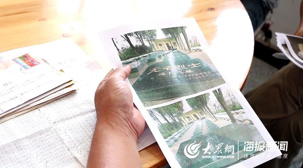 張景憲拿出烈士墓碑的照片,現場給楊學義烈士家屬講解烈士陵園的情況