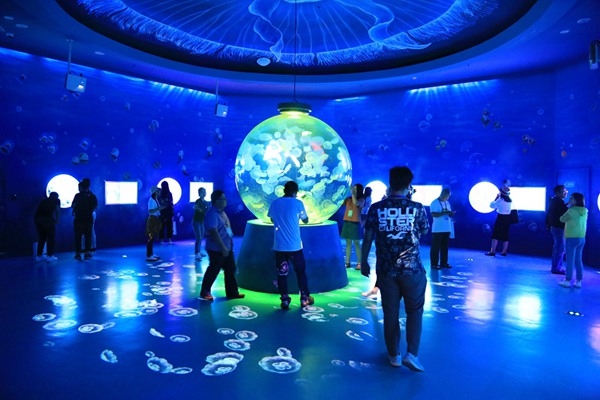 “潮汐是怎樣產(chǎn)生的?”“你的體重相當(dāng)于哪種海洋生物?”“海水中含有那些化學(xué)元素?”。7月15日,在全國(guó)最大的海洋科普宣傳基地——日照海洋科普館,“我愛這片藍(lán)色的國(guó)土”網(wǎng)絡(luò)主題活動(dòng)采訪團(tuán)走進(jìn)海底世界立體球展廳,通過AR技術(shù)、互動(dòng)體驗(yàn)等方式進(jìn)一步認(rèn)識(shí)海洋... [詳細(xì)]