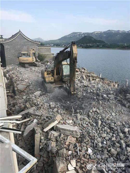 昔日位于濟南南部山區(qū)臥虎山水庫北岸的“畫家村”,雖然依山傍水、環(huán)境優(yōu)美,但是其一村、二村建在了臥虎山水庫一級飲用水水源保護區(qū)之內(nèi),南部山區(qū)于2018年6月成立指揮部,7月下旬一村、二村共35棟別墅全部拆除完畢。圖為拆除前的“畫家村”(資料圖片)