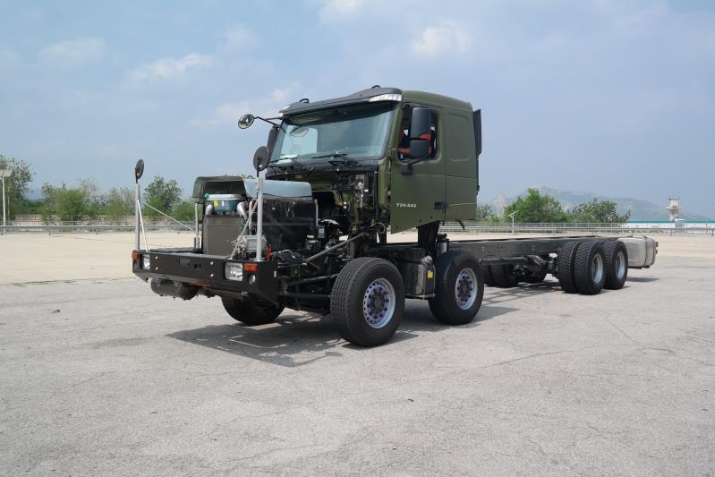 為山東彩車提供驅(qū)動(dòng)的底盤(pán),是由中國(guó)重汽的這款特種車輛改造而成。