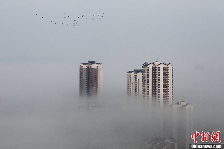 10月8日,重慶市大足區城市籠罩在濃濃的秋霧中,呈現出迷人的景象。10月開始,重慶便進入了全年多霧期,10月年均霧日為4.4天;12月霧日最多,年均7天。