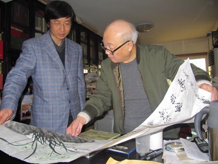 歐陽中石先生首先深情地對郭超英說:"你父親仲選先生和我是山東老鄉,我們是相知相交幾十年的老朋友了。看到你,我猶見故人。"此時,不僅是郭超英,來訪者都感到由衷的溫暖。記得歐陽先生有言:"我的門對學生是敞開的,沒有節假日。"先生常說:學海無涯,人生有涯。他希望在有限的歲月里能夠把知識更快、更有效地傳授給學生,提攜后進,他從來是不遺余力的。對于歐陽先生的師德品格,他的學生們深有感觸,在寒暑假,學生們仍常到家中與先生一起探討學問。所以,病中的先生面對三位前來拜師的中青年藝術家,話匣子便打開了。