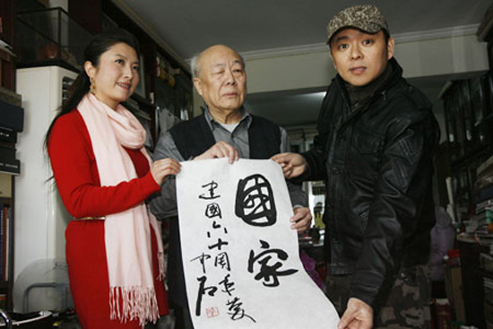 揮毫落墨,蒼勁有力的兩個大字“國家”躍然紙上。2月20日,著名學(xué)者、書法家歐陽中石先生為國慶獻(xiàn)禮歌曲《國家》題名,并在聽完歌曲后四贊“了不起”,同時,他還為主唱之一的成龍發(fā)音挑了毛病。